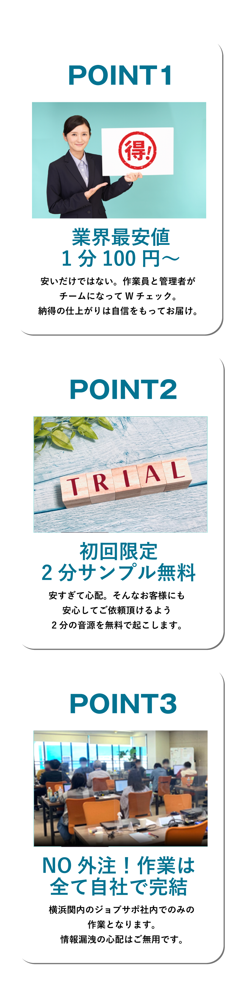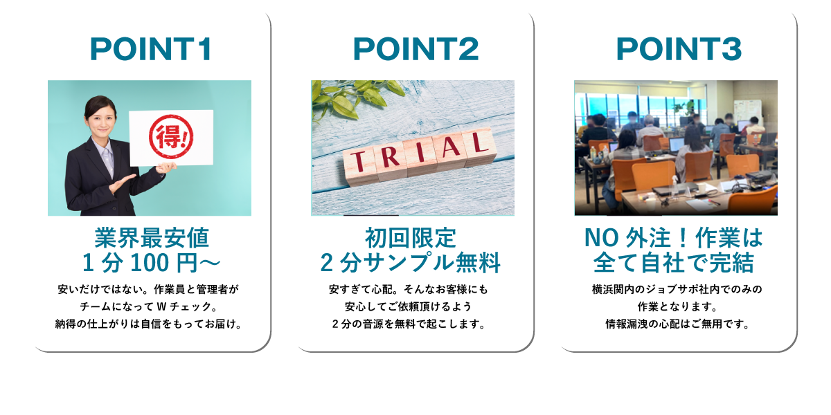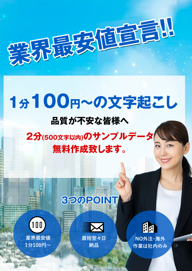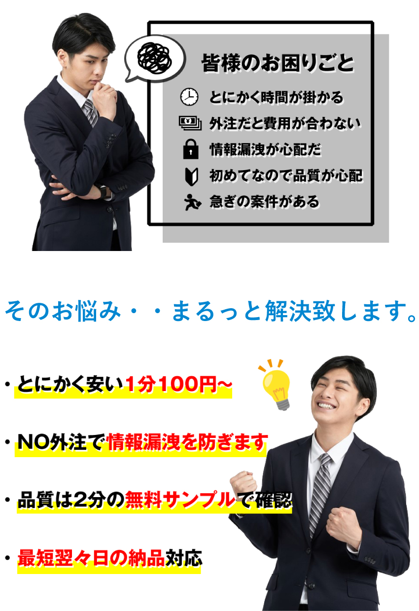 | 音声不明瞭データ | お受けできないかもしくは、納期が遅れる場合がございます。 |